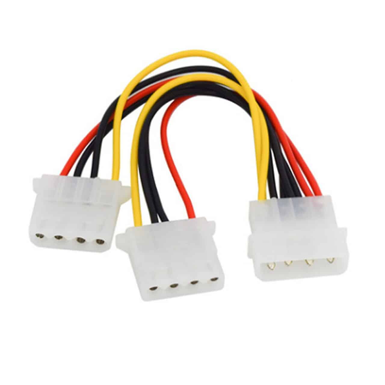 Male 4-Pin Molex Power to 2 Female 4-Pin Molex Power Connectors
