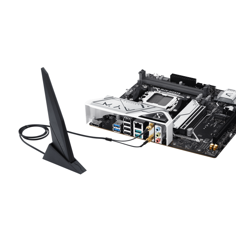 AMD B650 Micro-ATX motherboard with DDR5, PCIe 5.0 M.2 support, HDMI™, Realtek 2.5Gb Ethernet, Wi-Fi 6, rear USB 10Gbps ports, front USB 5Gbps Type-C®, SATA 6 Gbps, Two-Way AI Noise Cancelation, Aura Sync