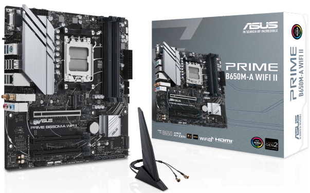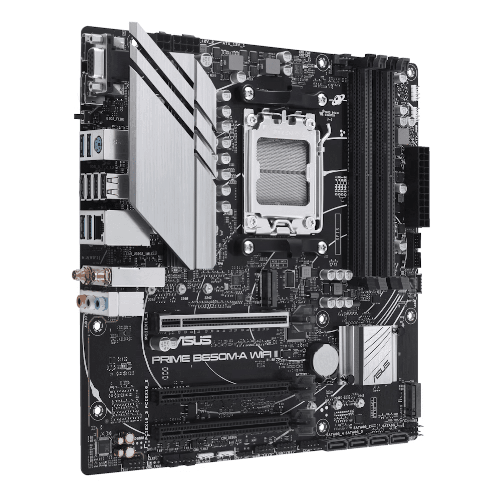 AMD B650 Micro-ATX motherboard, DDR5, PCIe 5.0 M.2 support, Realtek 2.5Gb Ethernet, Wi-Fi 6, DisplayPort, VGA, HDMI®, SATA 6 Gbps, USB 3.2 Gen 2 ports, front USB 3.2 Gen 1 Type-C®, BIOS FlashBack™, Arua Sync
