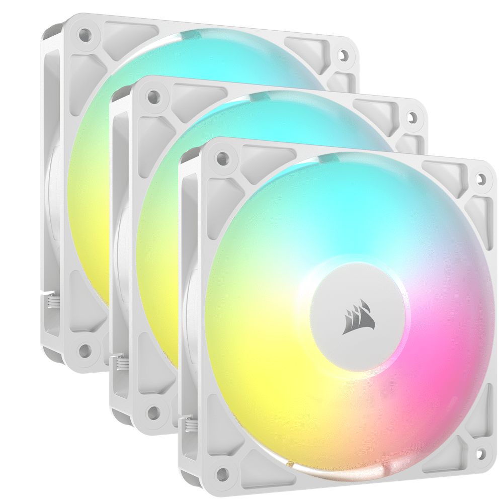 Get your PC cooling setup off on the right foot with a CORSAIR RS120 ARGB 120mm PWM Fans Triple Pack, offering daisy-chained 4-pin PWM and +5V ARGB motherboard control.