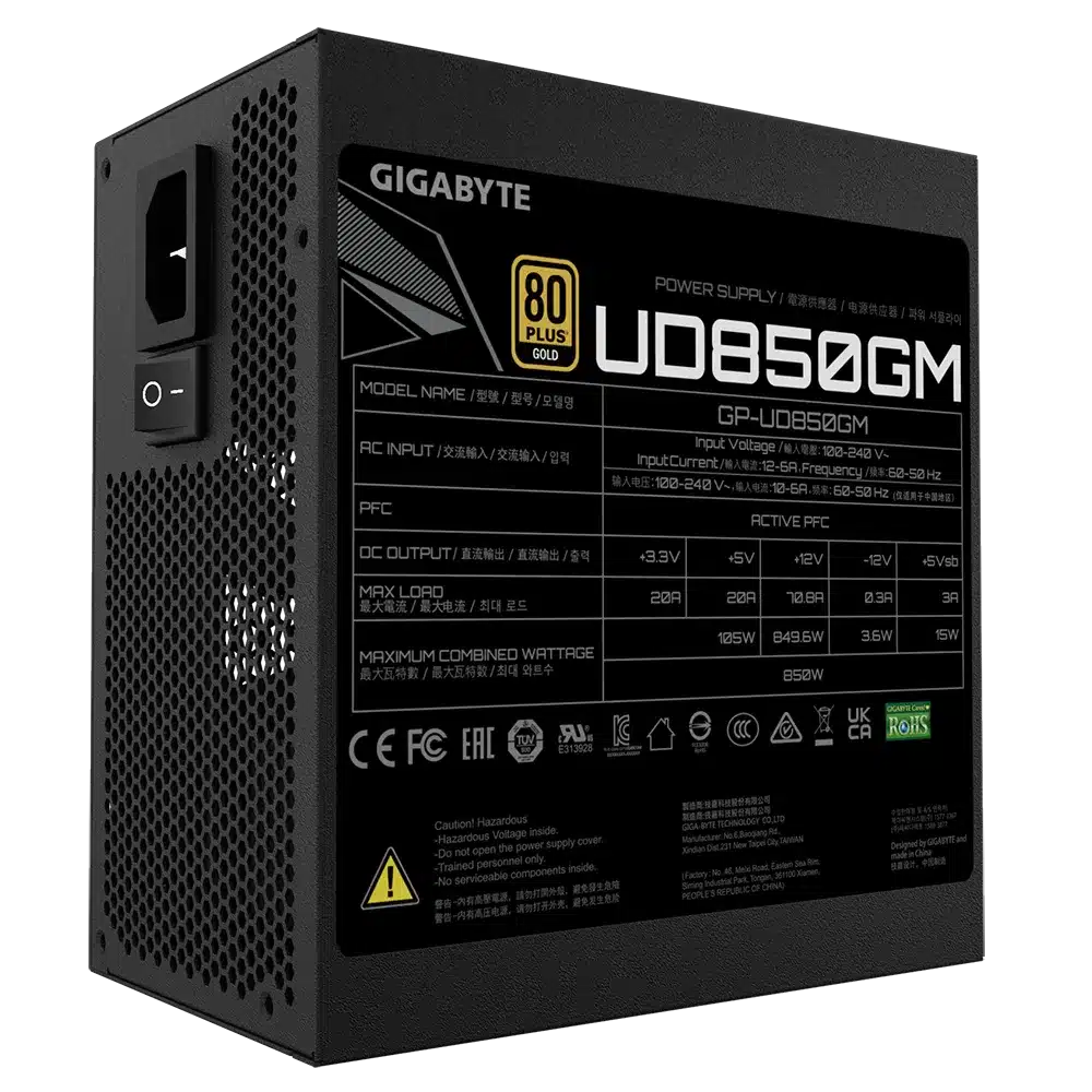 Gigabyte UD850GM 850W 80 Plus Gold Rated Power Supply, Fully Modular (Black)