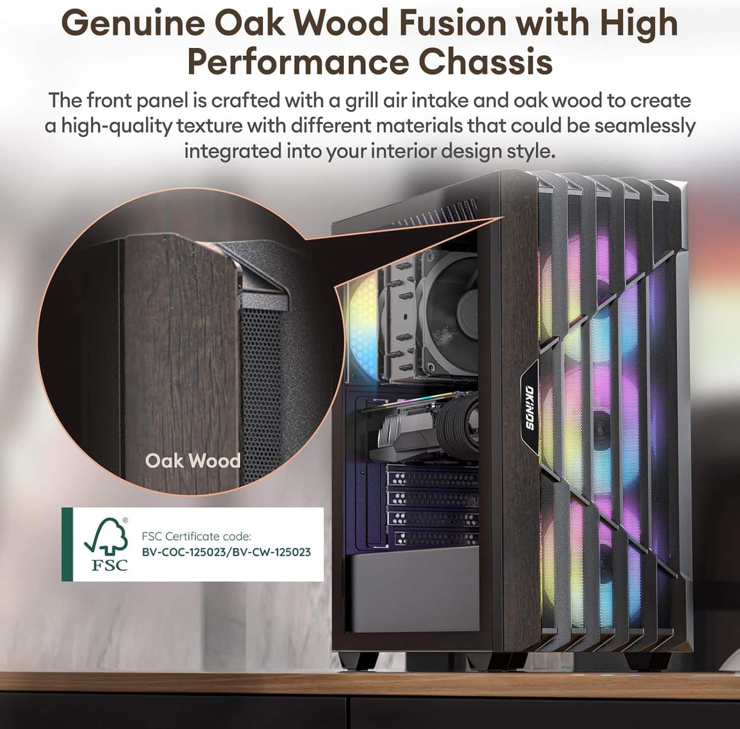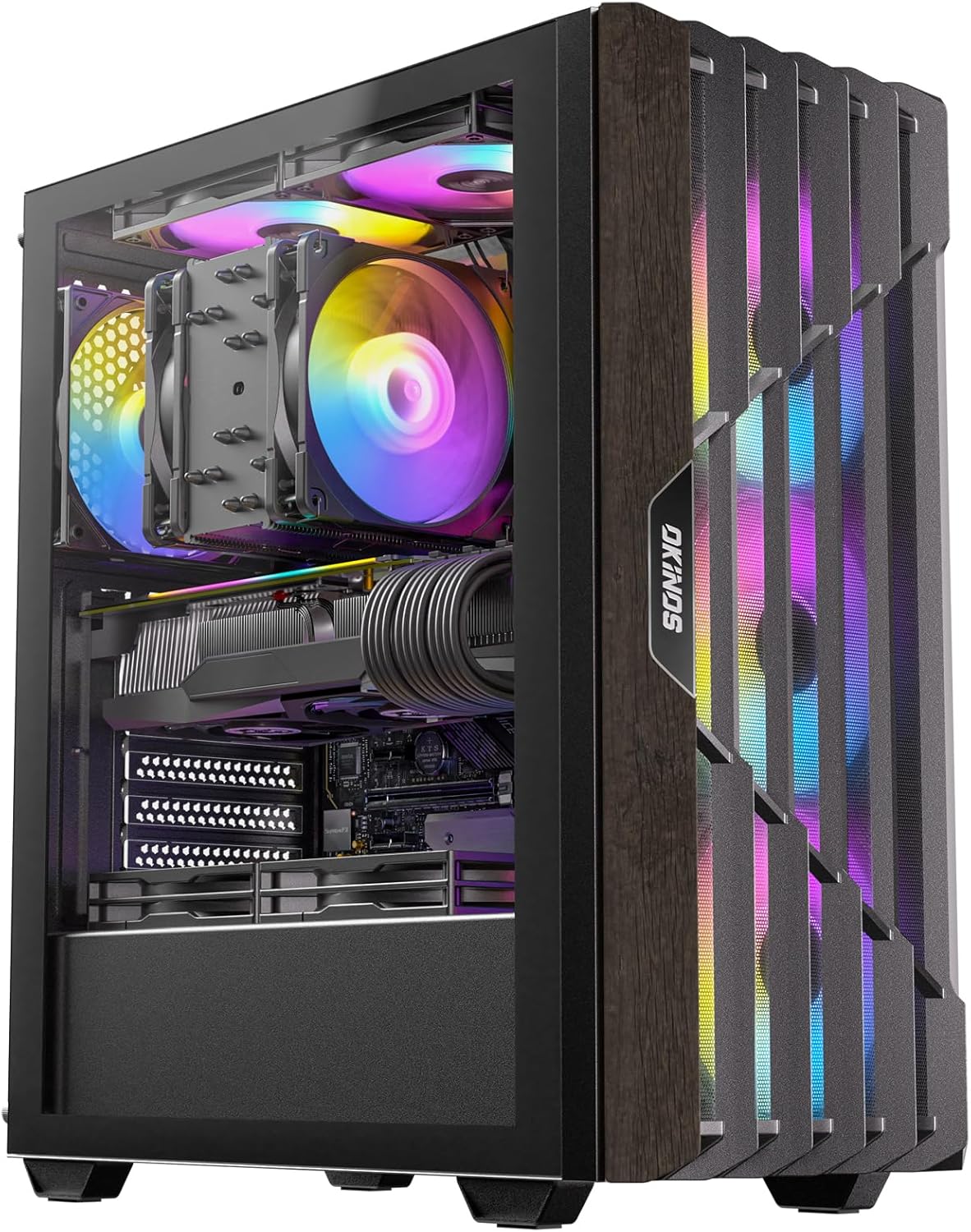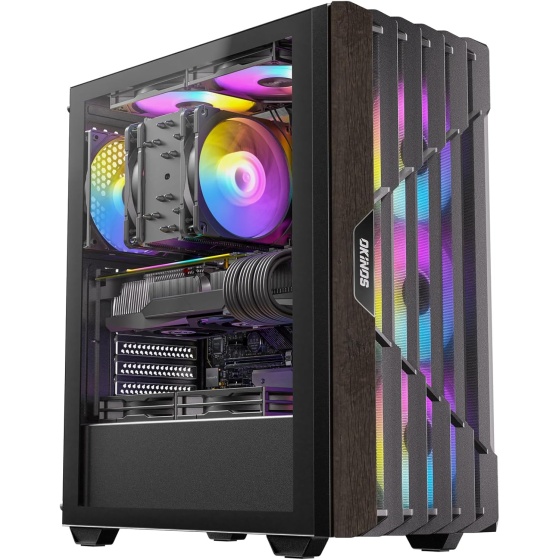 Okinos Cypress 5 Oak Wood/Black ATX Case with 4xARGB Fans