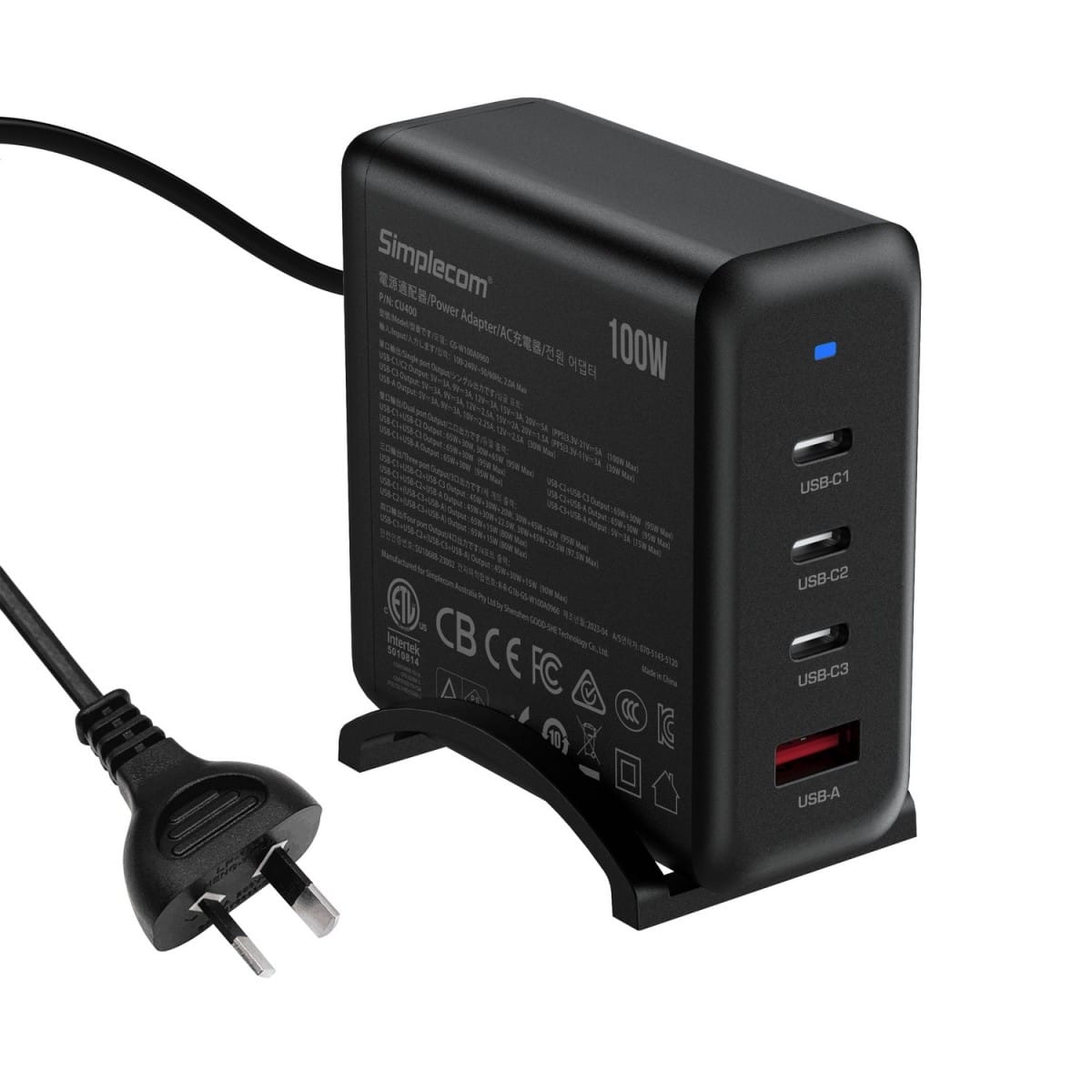 Simplecom CU400 4-Port PD 100W GaN Fast Charger 3xUSB-C + USB-A for Phone Tablet Laptop
